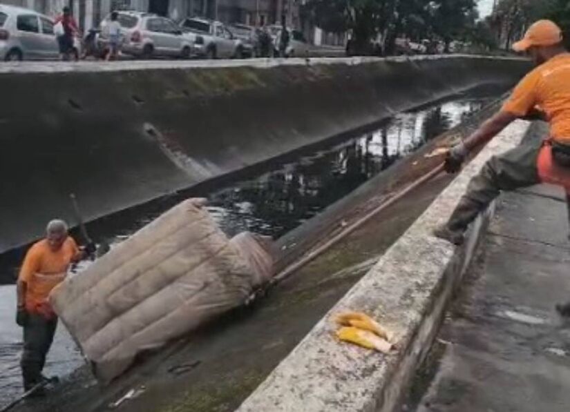 Nem só de água vivem os canais de Santos. Além de marcos da logística urbana e importantes aliados no controle de enchentes, as estruturas projetadas por Saturnino de Brito, que hoje abrigam peixes e recebem a presença constante de aves, acabam com frequência se tornando destino de objetos descartados de forma irregular.
