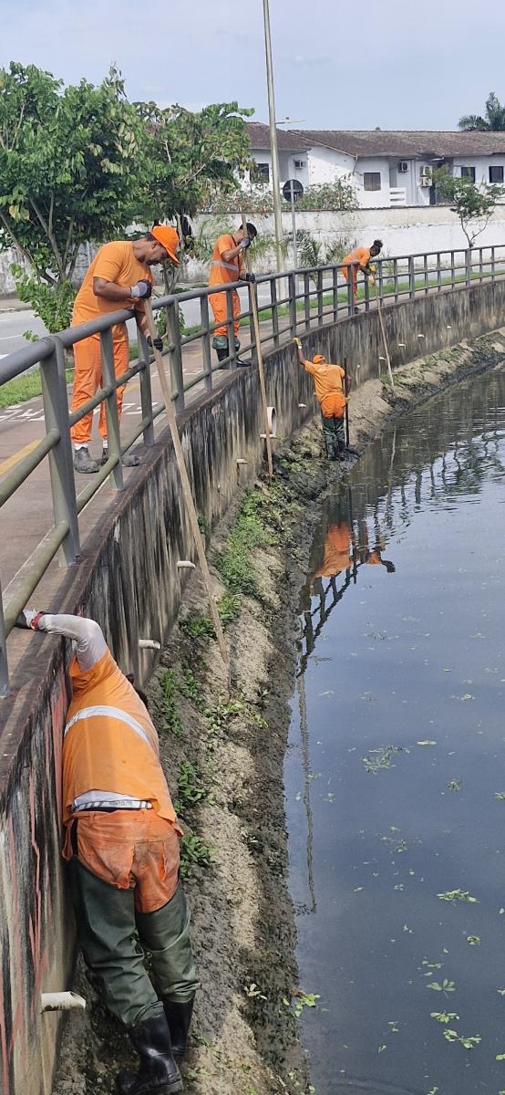 Além disso, a Prefeitura realiza semanalmente a limpeza de talude (trecho inclinado) dos canais, com raspação e capinação manual. Em um período aproximado de dois meses todos os canais são contemplados.