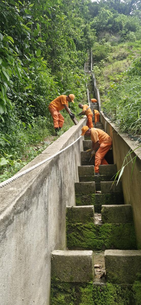 As caixas de sopé — estruturas de concreto instaladas em áreas de encosta para direcionar o fluxo de águas pluviais e sedimentos, prevenindo enchentes e deslizamentos — também tiveram aumento de atendimentos. Em 2024, foram limpas 114 unidades; em 2025, o total chegou a 139, crescimento de 21,9%.